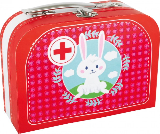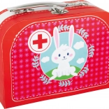 Spritze, Thermometer, Pinzette, Stethoskop, Salbe, Tabletten, Plüschhäschen, tragbarer Koffer