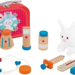 Ein niedliches Set für kleine Ärztinnen und Ärzte: Der SMALL FOOT Arztkoffer mit Häschen bringt 9-teiliges Zubehör in einem praktischen, tragbaren Koffer sowie ein weiches Plüschhäschen für das Praxis-Rollenspiel. Kinder ab 3 Jahren üben die Pflege ihrer Patientinnen und Patienten mit Stethoskop, Thermometer und Spritze aus sicheren Materialien: Holz, Karton und Stoff.