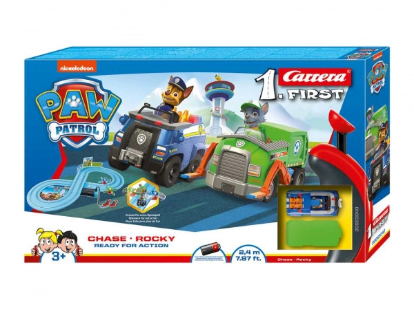 Die CARRERA FIRST Autorennbahn mit den beliebten Helden aus der Serie Paw Patrol ist die perfekte Wahl für Kinder ab 3 Jahren. Das kompakte Set mit Batteriebetrieb ermöglicht Rennen jederzeit und überall – ganz ohne Steckdose. Dank der intuitiven Steuerung und der stabilen Konstruktion ist sie ideal als erste Rennbahn.
