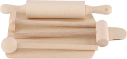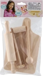 Das Set besteht aus hochwertigem Holz mit glatter Oberfläche für angenehme und sichere Nutzung. Dank der universellen Teile – Schneidebrett, Nudelholz und Fleischklopfer – können Kinder die Zubereitung von Speisen leicht nachahmen und grundlegende Küchenhandlungen erlernen.