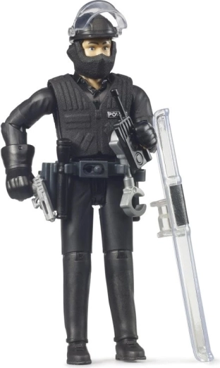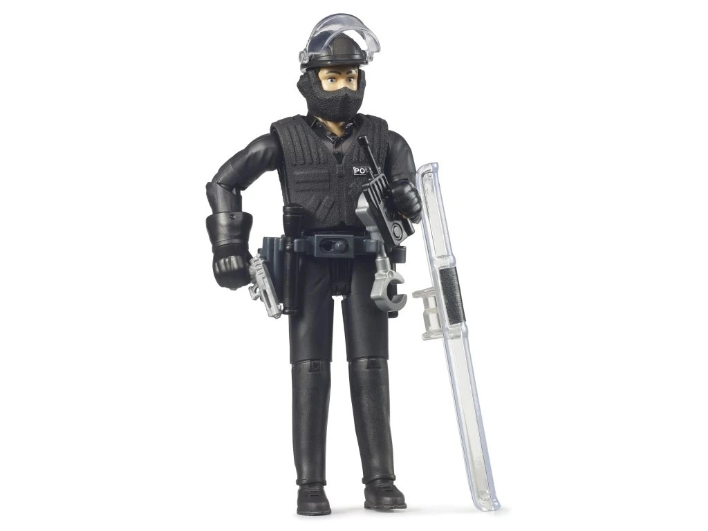 Die Figur BRUDER Bworld Polizist in schwerer Schutzausrüstung bietet Kindern ein authentisches Erlebnis aus der Welt der Sicherheitskräfte. Dank der detailreichen Ausarbeitung und der funktionalen Ausstattung können Kinder eigene Geschichten erschaffen und soziale Interaktionen trainieren. Bewegliche Körperteile erleichtern das Positionieren, und mit den zum Greifen geformten Händen lässt sich das beiliegende Zubehör leicht handhaben.