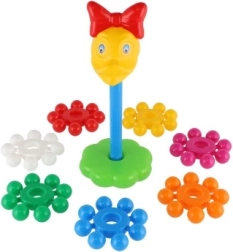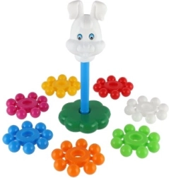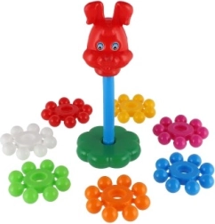 Breite, farbenfrohe Ringe liegen gut in kleinen Händen und lassen sich leicht auf die Mittelstange stecken. Das Spiel fördert die Präzision der Bewegungen und trainiert die Hand-Auge-Koordination schon ab den ersten Schritten.