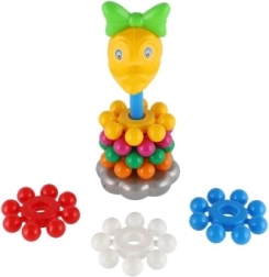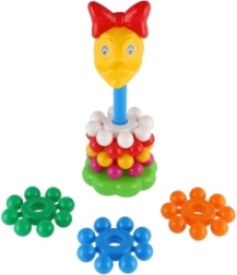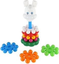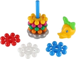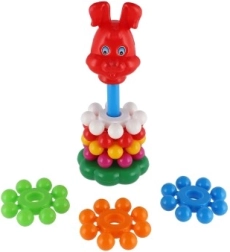 Diese spielerische Kunststoff-Steckpyramide mit Ringen ist ein ideales erstes Lernspielzeug für die Kleinsten. Kinder greifen die Ringe leicht und stecken sie auf die Stange, wodurch sie auf natürliche Weise ihre Feinmotorik, Koordinationsfähigkeiten sowie das Unterscheiden von Farben und Größen trainieren. Dank der Höhe von 26 cm ist der Turm stabil, gut sichtbar und lädt zum wiederholten Ausprobieren ein.