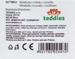 Das Spielzeug besteht aus robustem, leichtem Kunststoff mit glatten Kanten und ist in 3 Varianten mit unterschiedlichen Ringformen und lustigen Tiermotiven an der Spitze erhältlich. Die praktische Netzverpackung erleichtert Aufbewahrung und Transport.