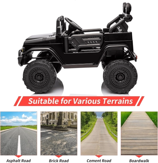 Das Multimediapanel bietet Anschlüsse für USB, AUX, MP3, SD und Bluetooth, dazu vordere und hintere LED-Leuchten sowie Startgeräusch für ein authentisches Gefühl. Eltern können die Fahrt vollständig mit der 2,4‑GHz‑Fernbedienung mit drei Geschwindigkeitsmodi und Notstopp-Funktion kontrollieren.