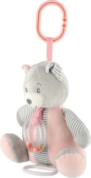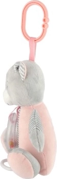 Dank des Clips lässt sich der Bär leicht am Bettchen, Kinderwagen oder Autositz befestigen.