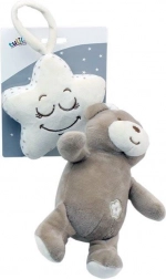Dieses niedliche Hängespielzeug verbindet einen Bären mit einem cremefarbenen Stern, in dessen Innerem sich die Spieluhr befindet. Nach dem Aufziehen am Bären erklingt ein angenehmes Wiegenlied, das Ihr Baby beruhigt und sanft beim Einschlafen unterstützt – zuhause und unterwegs.