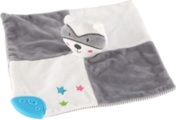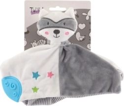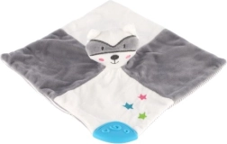 Die elegante grau-weiße Farbkombination und das niedliche Waschbärdesign machen das Schnuffeltuch zum perfekten Accessoire für jedes Kinderbett.