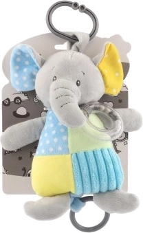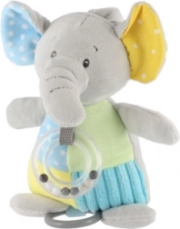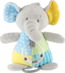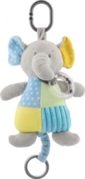 Niedlicher Plüschelefant, der sich leicht mit einem Kunststoffclip an Kinderbett oder Kinderwagen befestigen lässt. Beim Ziehen am Ring wird eine Melodie abgespielt, die die kindliche Neugier und die Entwicklung der Sinneswahrnehmung anregt.