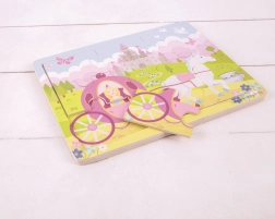 Erleben Sie die magische Welt mit dem Holzpuzzle Prinzessin mit Kutsche von Bigjigs Toys. Kinder tauchen gerne in das Zusammenfügen ein und genießen das Entstehen der magischen Szene. Jedes Teil ist sorgfältig gestaltet, um sicher und einfach zu greifen.