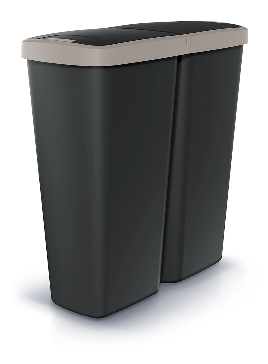 Prosperplast Compacta Q Duo Mülleimer 50 l – schwarz mit hellgrauem Deckel