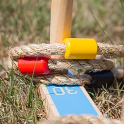 Dieses klassische Set bietet einfache Regeln und jede Menge Spaß. Stabile Holzteile und robuste Seilringe sorgen für eine lange Lebensdauer, während die farbige Kennzeichnung das Punktesammeln und das Zahlenlernen erleichtert. Dank der kompakten Maße nehmen Sie es problemlos in den Garten, in den Park oder mit in den Urlaub.