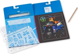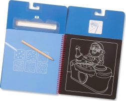 Inklusive Holzkratzer, Schablonen und Aufklebern. Kinder können Formen nachfahren, Szenen gestalten und ihre Feinmotorik weiterentwickeln.