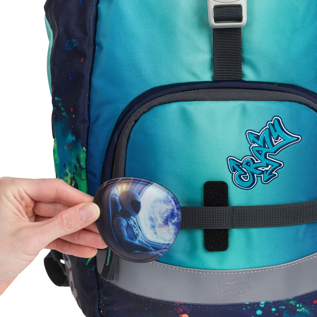 Die BAAGLIES Abzeichen sind ein stylisches Accessoire für Schulranzen und Rucksäcke von BAAGL. Dank der Klettbefestigung kannst du sie jederzeit passend zur aktuellen Stimmung oder zu Lieblingsmotiven austauschen. Das Weltraum‑Set verleiht der Schulausrüstung einen originellen Look und fördert die kindliche Fantasie.