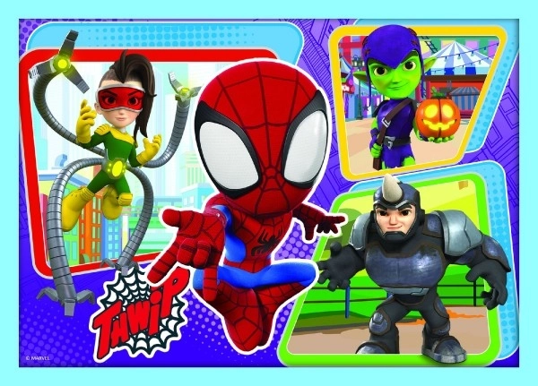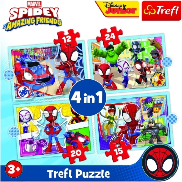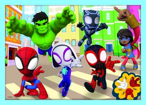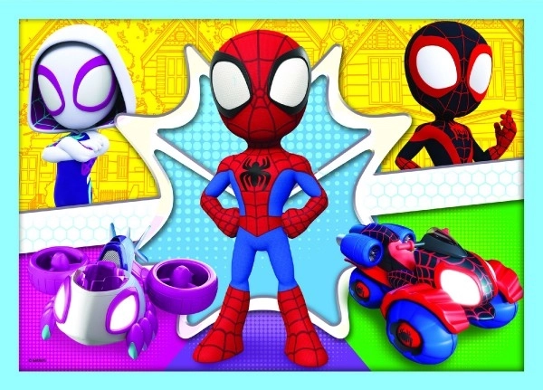 Entdecke die bunte Welt der Superhelden mit dem 4-in-1-Puzzle-Set mit Motiven von Spidey und seinen Freunden. Jedes der vier Puzzles hat eine unterschiedliche Anzahl an Teilen, sodass Kinder ihre Fähigkeiten und ihr Selbstvertrauen schrittweise steigern können. Nach dem Zusammensetzen entstehen vier Bilder mit den Maßen 285 × 205 mm – ideal für Kinderhände.