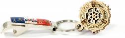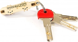 Leichter Holzanhänger mit Loch für einen Schlüsselring – drehen Sie an einem Rad und das andere rotiert von selbst. Ein stylisches Accessoire für Schlüssel oder Rucksack.