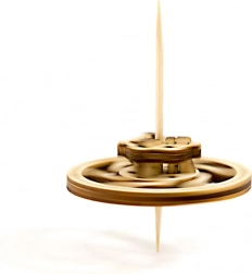 Ein präzise ausbalancierter Kreisel, der nach dem Anstoßen sanft auf einer ebenen Fläche rotiert. Kleines Modell, großer Spaß.