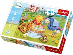 Das Puzzle zeigt beliebte Figuren aus Disneys Winnie Puuh. Leuchtende Farben und lustige Szenen ziehen die Aufmerksamkeit auf sich und fördern die kindliche Kreativität.