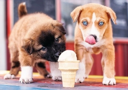 Dieses Puzzle wird Sie mit seiner Form und dem Motiv zweier verspielter Welpen begeistern, die den Moment mit Eis genießen.
