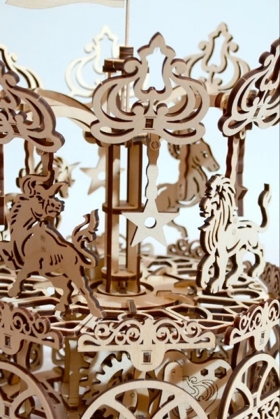 Jedes Teil ist präzise ausgeschnitten für eine reibungslose Passung und eine eindrucksvolle Optik. Ornamente und Tiermotive unterstreichen die Ästhetik des klassischen Karussells.