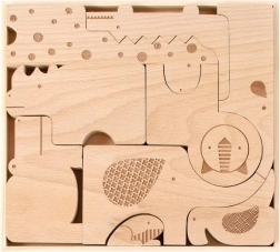 Kinder können die Teile in die Einlage legen oder daraus Tier-Türme bauen. Fördert Feinmotorik, Koordination und Geduld.