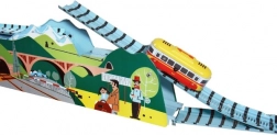 Authentisches Modell einer Bergbahn aus bedrucktem Blech mit mechanischem Federwerk zum Aufziehen mit Schlüssel. Genießen Sie die gleichmäßige Bewegung des Fahrzeugs auf der Strecke dank Zahnstangenführung, realistischer Steigungen und Gefälle sowie der präzisen KOVAP-Verarbeitung im Maßstab 1:120. Ideal für Sammler und Liebhaber klassischer Blechspielzeuge.