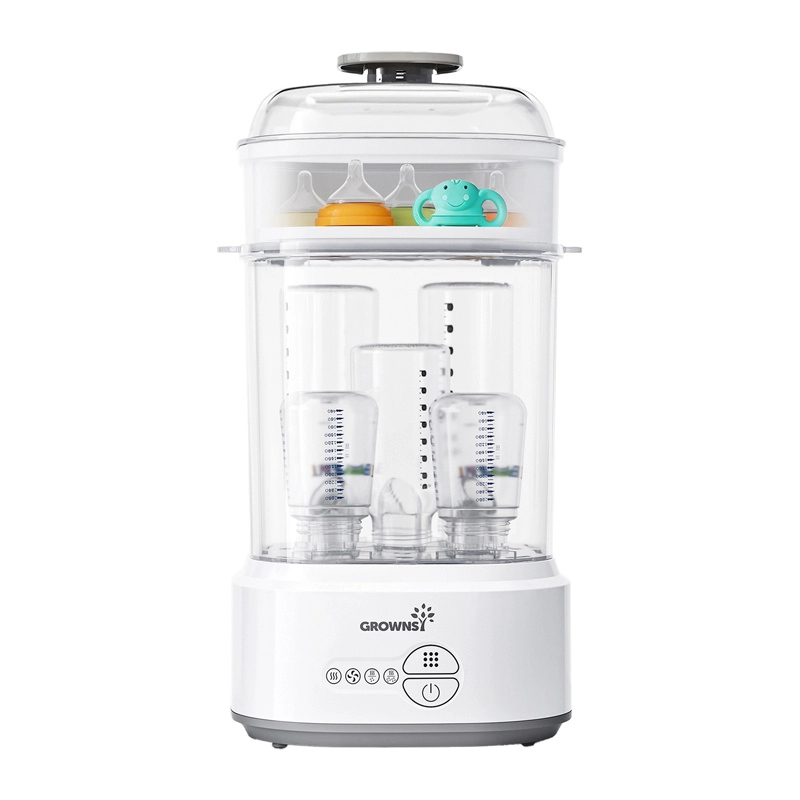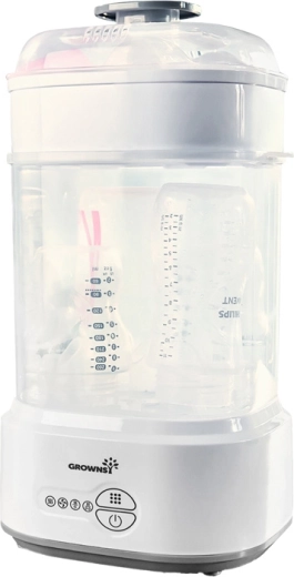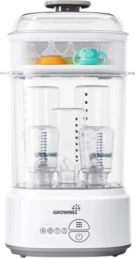 Der GROWNSY Sterilisator mit Trockner ist die Lösung für Eltern, die Babyflaschen und Zubehör schnell, sicher und ohne Chemie für den nächsten Einsatz bereit haben möchten. Dampf beseitigt Mikroorganismen effektiv und die anschließende 360°-Trocknung verhindert erneute Bakterienvermehrung.