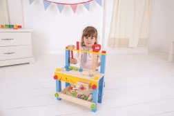 Dieser farbenfrohe Holz-Werkbanktisch von BIGJIGS TOYS ist der perfekte Einstieg in die Welt der Werkzeuge. Dank realistischer Elemente und sicherer Holzwerkzeuge üben Kinder praktische Fertigkeiten und lernen grundlegende Prinzipien im Umgang mit Werkzeugen – spielerisch und sicher.
