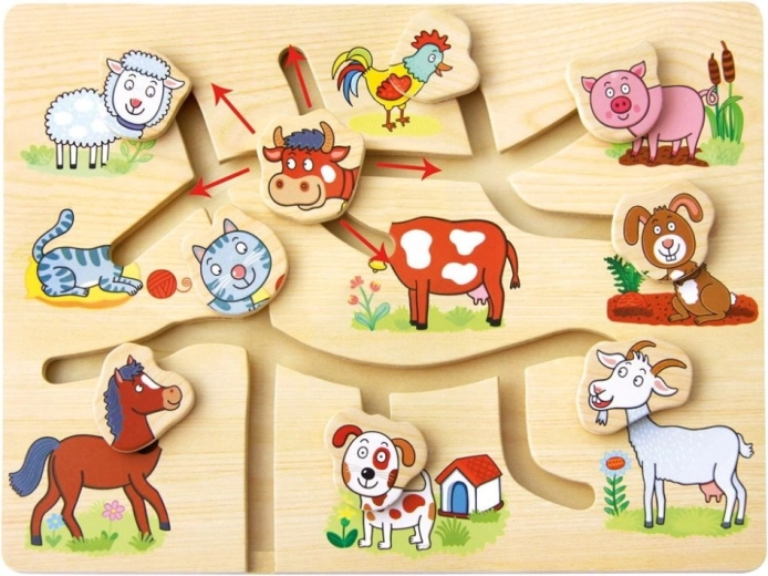 Entdecken Sie den Zauber dieses Holzpuzzles mit dem Thema Bauernhof, das zur Förderung der kindlichen Entwicklung entworfen wurde. Das Labyrinth ist so konzipiert, dass es auf spielerische und interaktive Weise hilft, die Feinmotorik und die Hand-Augen-Koordination zu verbessern. Kinder lernen nicht nur, einzelne Tiere zu erkennen, sondern üben auch räumliche Orientierung und logisches Denken.