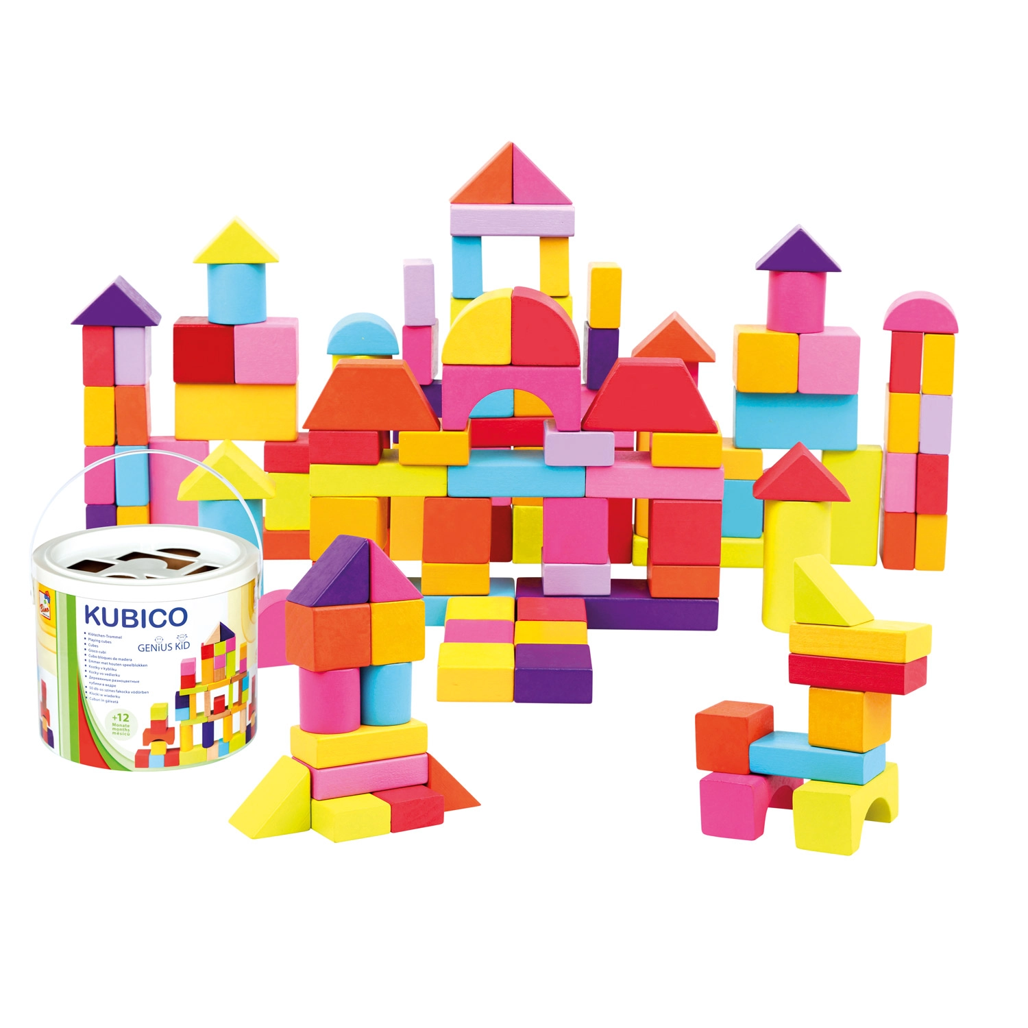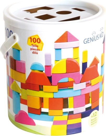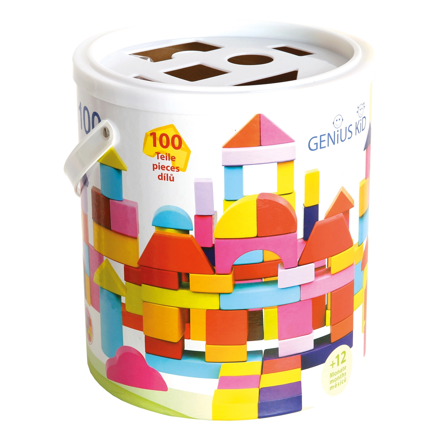 Holz-Bauklötze im Eimer – 100 Stk., neue Farben