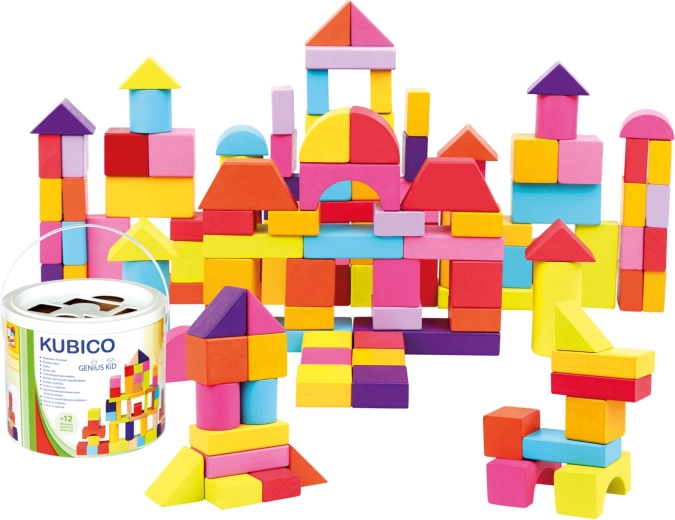Dieses umfangreiche Set aus Holzbausteinen in neuen Farben bietet Kindern unendliche Möglichkeiten, Türme, Brücken und einfache Bauwerke zu errichten. Die praktische Verpackung im Kartoneimer erleichtert Aufbewahrung und Transport, während der Deckel mit Öffnungen als Sortierhilfe für Logik und Geduld dient.