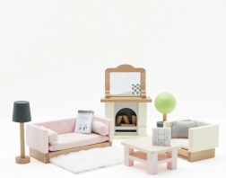 Dieses wunderschöne Wohnzimmer ist ideal für Puppenhäuser und wurde entwickelt, um Kinder zum Spielen zu inspirieren und ihre Fantasie zu fördern. Die Ausstattung des Wohnzimmers ist mit ungiftigen Farben dekoriert und aus FSC®-zertifiziertem Holz gefertigt – für langanhaltenden Spielspaß.