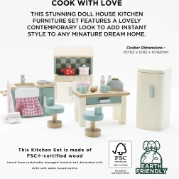 Erweitern Sie das Spiel Ihrer Kinder mit diesem schönen und detailreichen Küchen-Set aus der Daisylane-Kollektion. Dieses Set bereichert nicht nur Ihr Puppenhaus, sondern inspiriert Kinder auch zu Kreativität und fantasievollem Spiel. Jedes Teil ist mit Augenmerk auf kleinste Details gefertigt und trägt so zu einem realistischen Spielerlebnis bei.