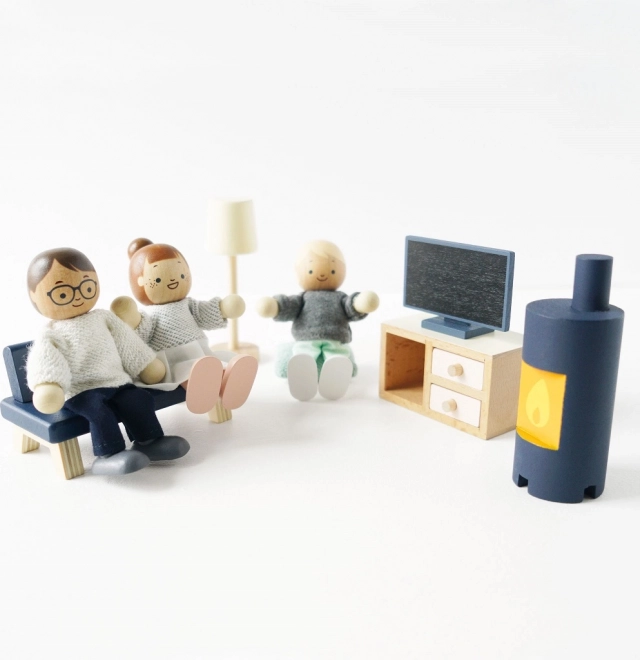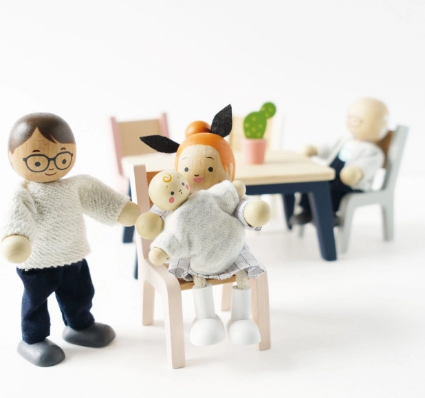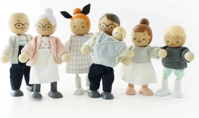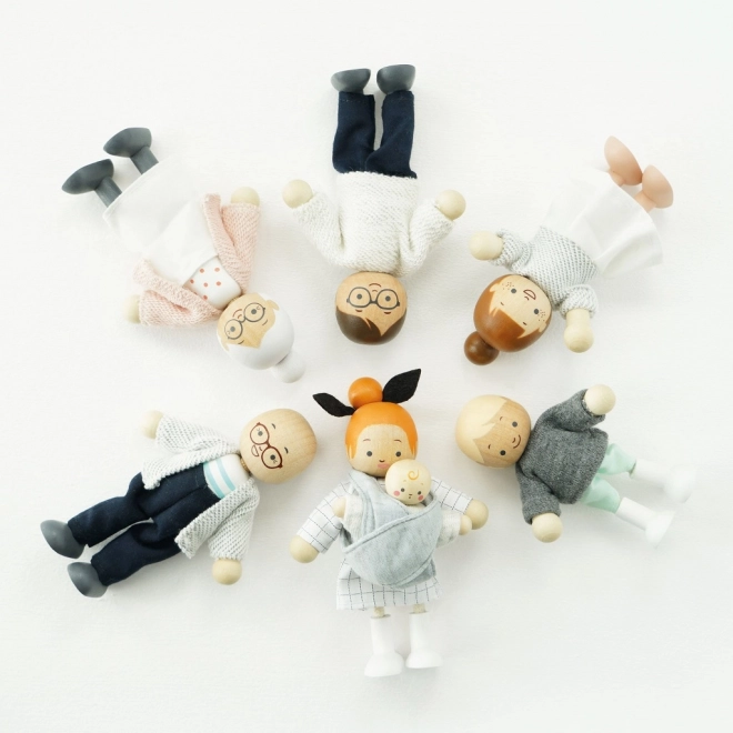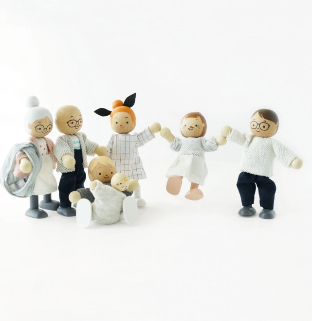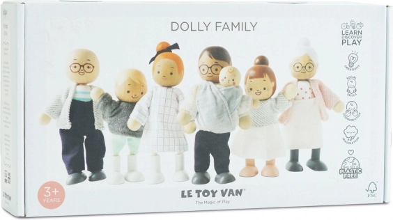 <Das Holzpuppen-Set Meine Familie ist ideal fcr alle Puppenh4user und Produkte der Marke Le Toy Van. Jede Figur ist in handgen8hte Kleidung geh41lt und hat bewegliche Gliedma33en. Dieses Spielzeug ist nicht nur sch47n, sondern auch lehrreich und hilft Kindern, Kommunikations-, Sozial- und Kreativitatfdigkeiten zu entwickeln.<
