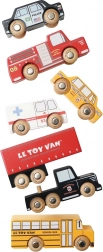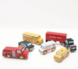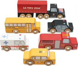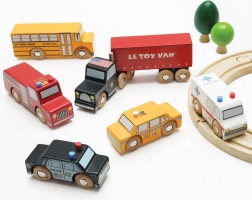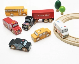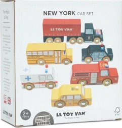 Entdecken Sie das verspielte Set aus sechs Holzfahrzeugen von LE TOY VAN, inspiriert von New York, gefertigt aus nachhaltigem FSC-Holz und bemalt mit ungiftigen Farben auf Wasserbasis. Das Set fördert fantasievolles Spiel, entwickelt die Feinmotorik und ist kompatibel mit Holzgaragen und Holzeisenbahnen von LE TOY VAN und anderen Marken.