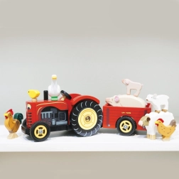 Le Toy Van roter Traktor mit Anhänger ist das ideale Spielzeug für kleine Landwirte. Hergestellt aus langlebigem Holz und mit ungiftigen Farben bemalt, garantiert dieser Traktor stundenlanges fantasievolles Spielen.