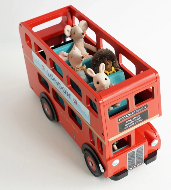 Entdecken Sie die Schönheiten Londons mit dem Doppeldecker Holzbus Le Toy Van. Dieses ikonische Spielzeug, entworfen mit Details wie realistischen Beschilderungen und einem abnehmbaren Dach, bietet eine großartige Möglichkeit, die kindliche Vorstellungskraft und Feinmotorik zu fördern.