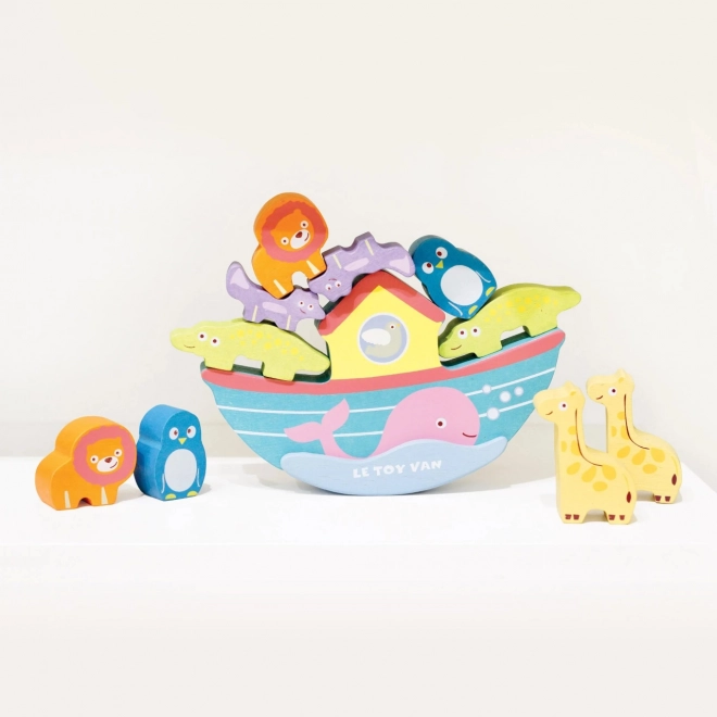 Diese wunderschön farbige Balance-Arche enthält zehn handbemalte Tiere, die Kinder auf das Boot setzen, um ihre Hand-Auge-Koordination und Geschicklichkeit zu fördern. Das Set dieser Tiere und das Boot werden aus nachhaltigem FSC-Holz hergestellt und sind mit wasserbasierten, ungiftigen Farben bemalt.