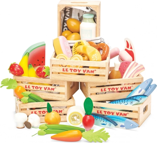 Die Holzkiste mit Früchten von Le Toy Van ist ein perfektes Mittel zur Förderung der kindlichen Fantasie. Sie enthält verschiedene Obstsorten wie Banane, Erdbeere und Orange. Alle Teile sind aus robustem und nachhaltigem Holz gefertigt, mit ungiftigen Farben bemalt und in idealer Größe für kleine Kinderhände.