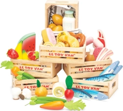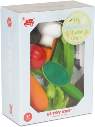 Entdecken Sie den Zauber des Kaufmannsladens mit einer Holzkiste voller Gemüse von LE TOY VAN. Sorgfältig gearbeitete Stücke wie Karotte, Radieschen, Champignons und Zucchini fördern Fantasie, Feinmotorik und Wissen über gesunde Ernährung. Hergestellt aus nachhaltigem Holz und bemalt mit wasserbasierten, ungiftigen Farben – eine sichere Wahl für kleine Hände.