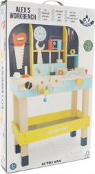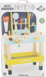 Die Kinder-Holzwerkbank ALEX von LE TOY VAN bietet alles, was kleine Reparaturprofis für realistisches Spiel brauchen. Dank der soliden Verarbeitung aus zertifiziertem FSC-Holz und ungiftigen Farben ist sie sicher, langlebig und umweltfreundlich. Enthalten sind eine integrierte Kreissäge, Messskala und ein Schraubstock, ein oberes Regal mit Haken sowie ein unterer Stauraum für weiteres Zubehör.