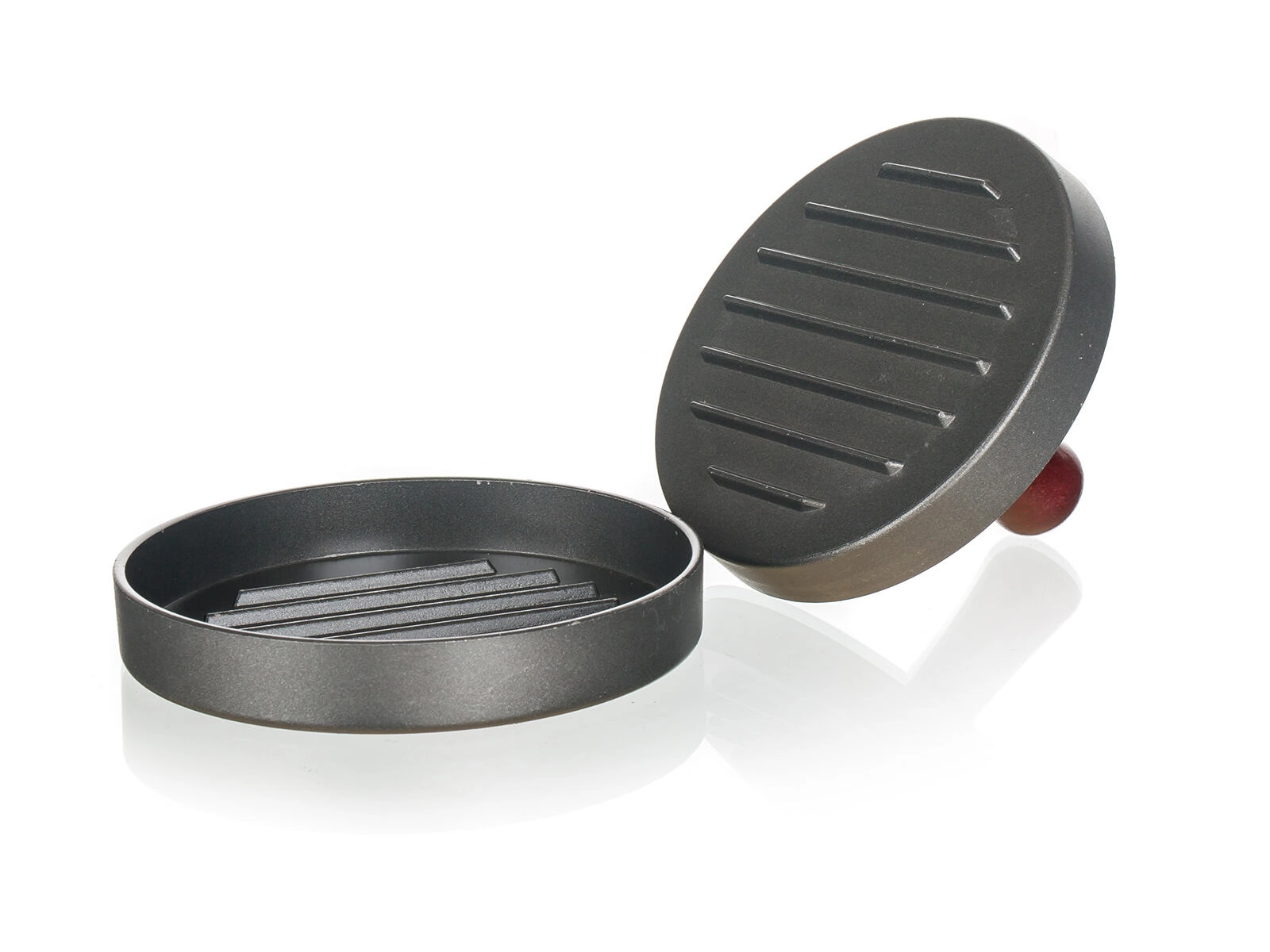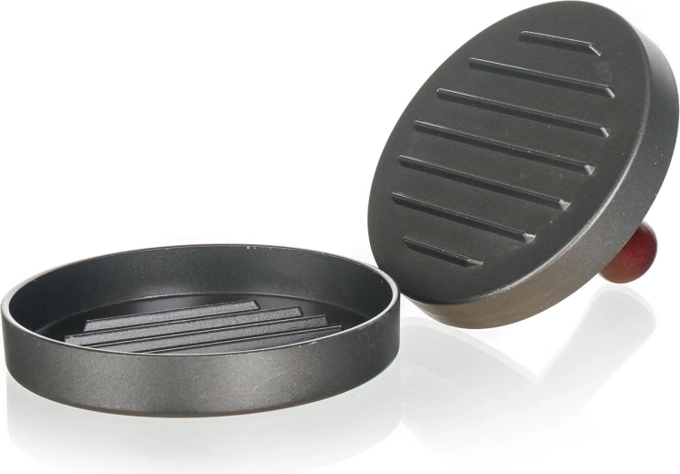 Die Presse verteilt den Druck gleichmäßig über die gesamte Fläche, sodass jedes Burger-Patty die gleiche Dicke und Form hat – für ein gleichmäßiges Garen in der Pfanne und auf dem Grill.