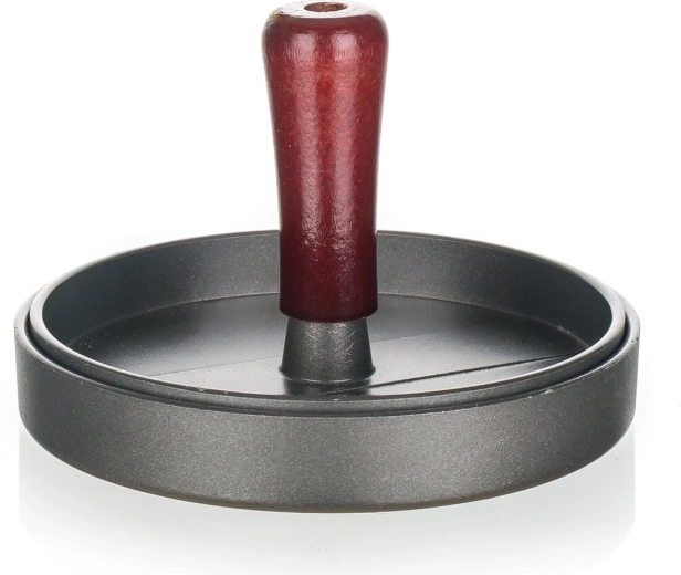 Formen Sie in wenigen Sekunden perfekt runde und gleichmäßige Burger-Patties. Die Presse aus Druckguss-Aluminium mit Antihaftbeschichtung spart Zeit und Mühe, verhindert das Anhaften des Fleisches und erleichtert das Entnehmen der fertigen Patties. Der ergonomische Holzgriff liegt sicher in der Hand und ermöglicht präzises Pressen mit kontrolliertem Druck.