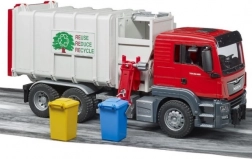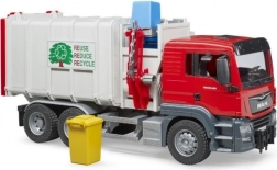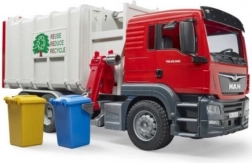 Die Verpackung enthält zwei bunte Mülltonnen, die ein noch authentischeres Spielerlebnis ermöglichen und Kinder über Recycling und Nachhaltigkeit informieren. Dank des Maßstabs von 1:16 ist das Modell eine hervorragende Ergänzung für jede Spielzeugsammlung.