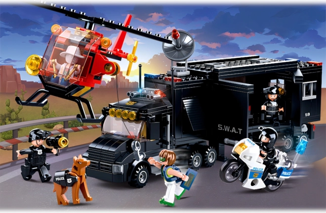 Mobile SWAT-Einsatzzentrale (Lastwagen), Hubschrauber, Polizeimotorrad, 5 Figuren, Zubehör für actionreiche Szenen
