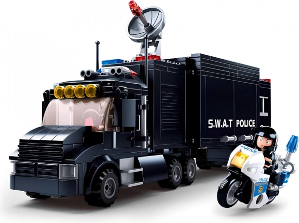 SLUBAN Polizei SWAT mobile Einsatzzentrale mit Hubschrauber und Motorrad
