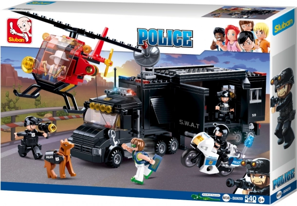 Bauen Sie eine actiongeladene Polizeiwelt mit dem SLUBAN Bauset, in dem eine SWAT mobile Einsatzzentrale, ein Hubschrauber, ein Polizeimotorrad sowie ein Figuren-Set nicht fehlen. Mit 535 Teilen und mittlerem Schwierigkeitsgrad ist es die ideale Wahl für Kinder ab 6 Jahren, und dank der Kompatibilität mit LEGO und anderen Marken erweitern Sie Ihre Sammlung mühelos.