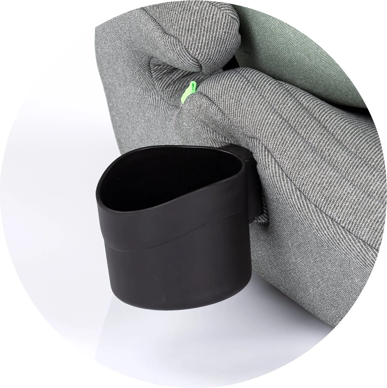 Der integrierte Halter hält Flasche oder Becher stets griffbereit und hilft, Ordnung im Auto zu bewahren.