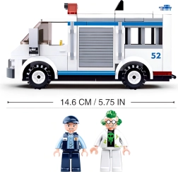 Baue deine eigene Polizeiszene mit der Sluban Polizei und erlebe die adrenalingeladene Flucht des Diebs auf dem Motorrad sowie den Einsatz des Gefängniswagens. Das Set besteht aus hochwertigem, robustem und unbedenklichem ABS-Kunststoff und wird mit einer übersichtlichen Anleitung in einer farbigen Box geliefert.