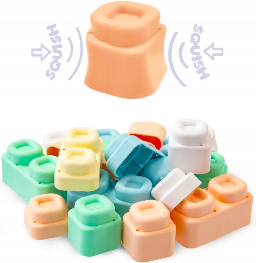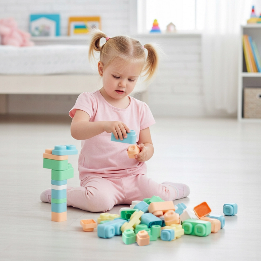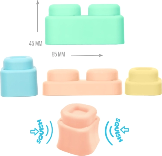 Das Material ist weich, flexibel und zertifiziert, sodass Kinder die Bausteine und Matten sicher drücken, darauf kauen oder sie werfen können – ohne Verletzungsrisiko. Die Teile lassen sich leicht verbinden und trennen, was die Feinmotorik, die Hand-Auge-Koordination und die Selbstständigkeit beim Spielen stärkt.